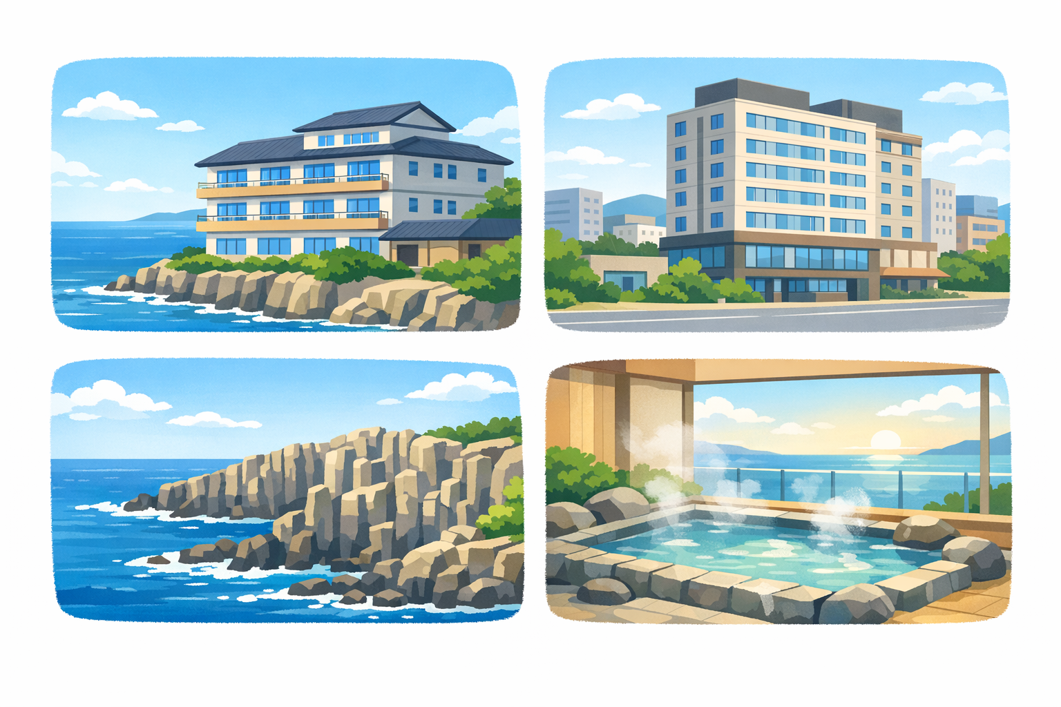 どっちを選んでも、海・温泉・食の福井旅が満喫できるはず!予約前に部屋タイプや温泉浴場の雰囲気をチェックして、家族みんなが笑顔になる旅にしてください 😊