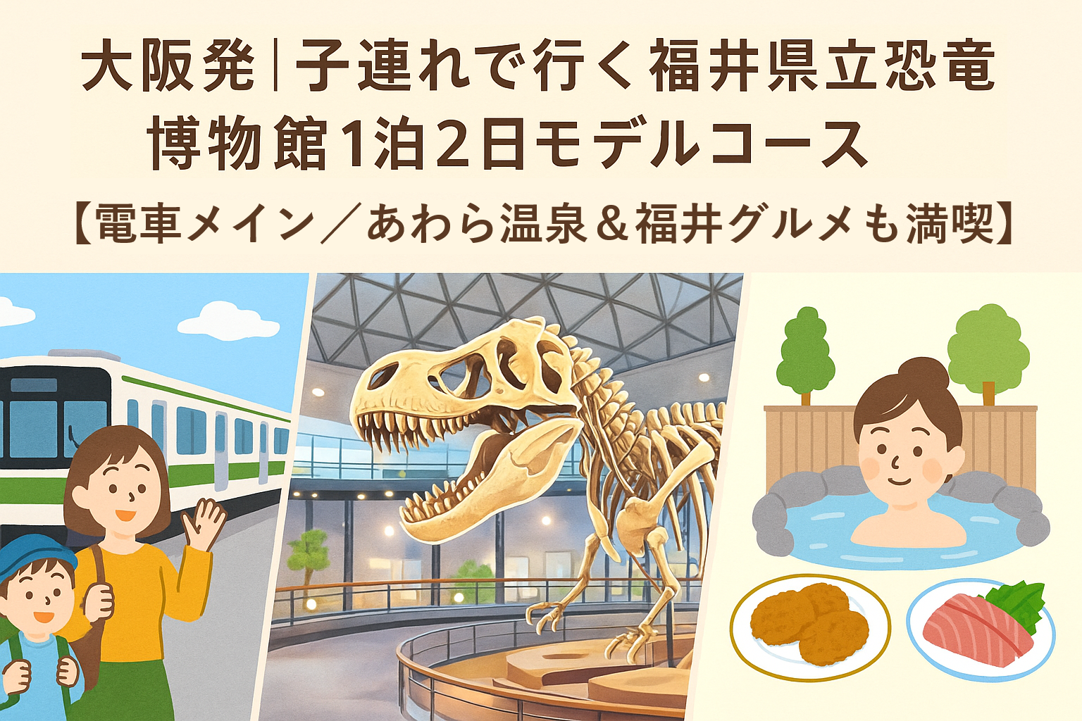 大阪発でも、少し早起きすれば1泊2日で「恐竜博物館+温泉+福井グルメ」をよくばりに楽しめる旅になります。