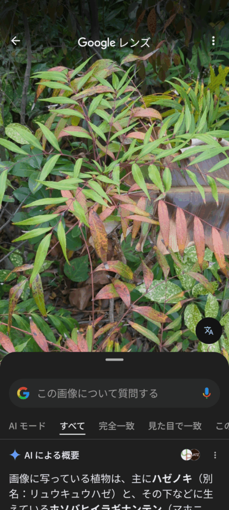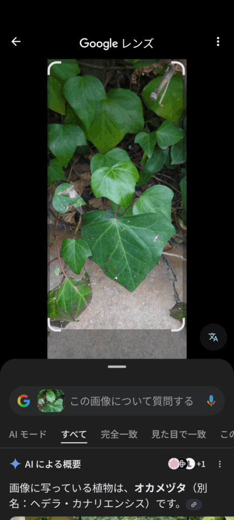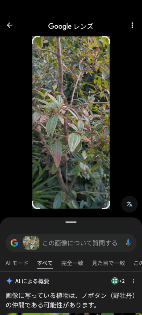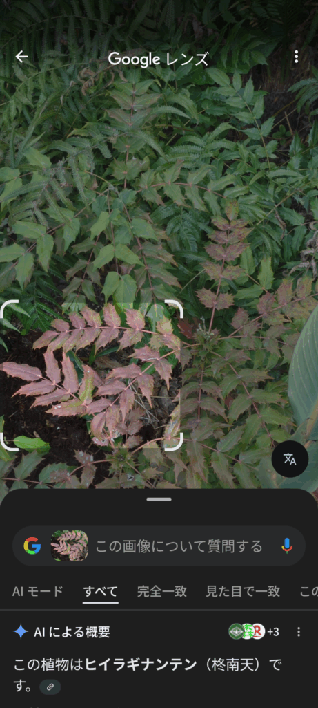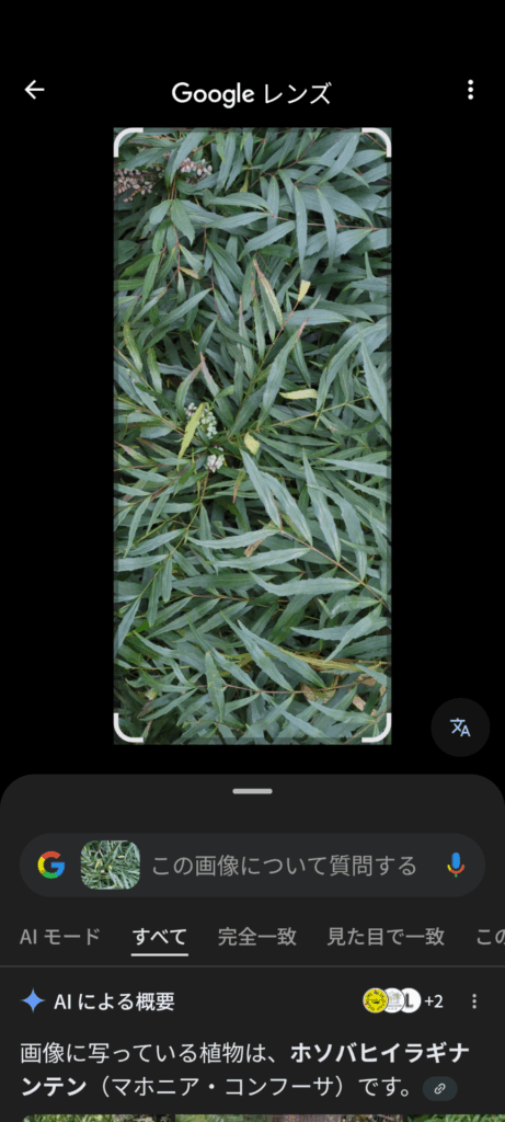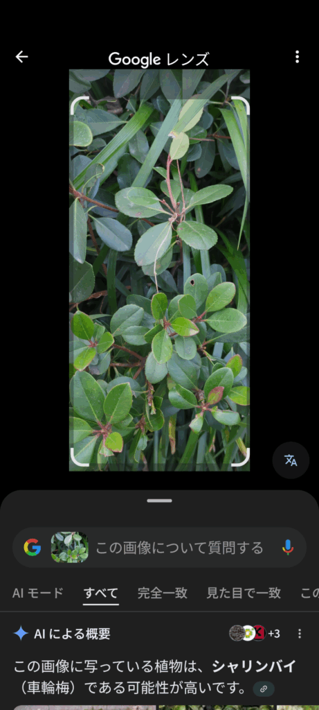 ここからは、実際にエリア内で見つけた植物たちを、Googleレンズの判定結果とともにご紹介します。