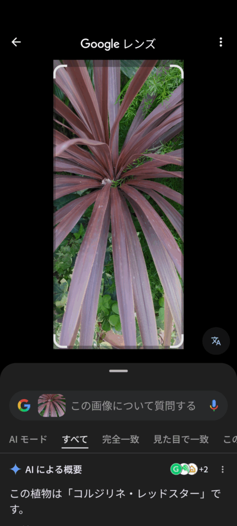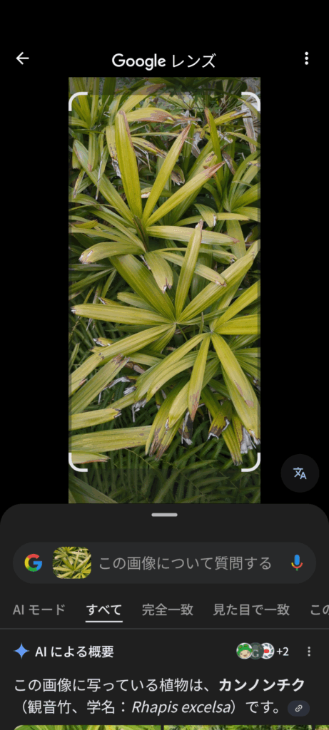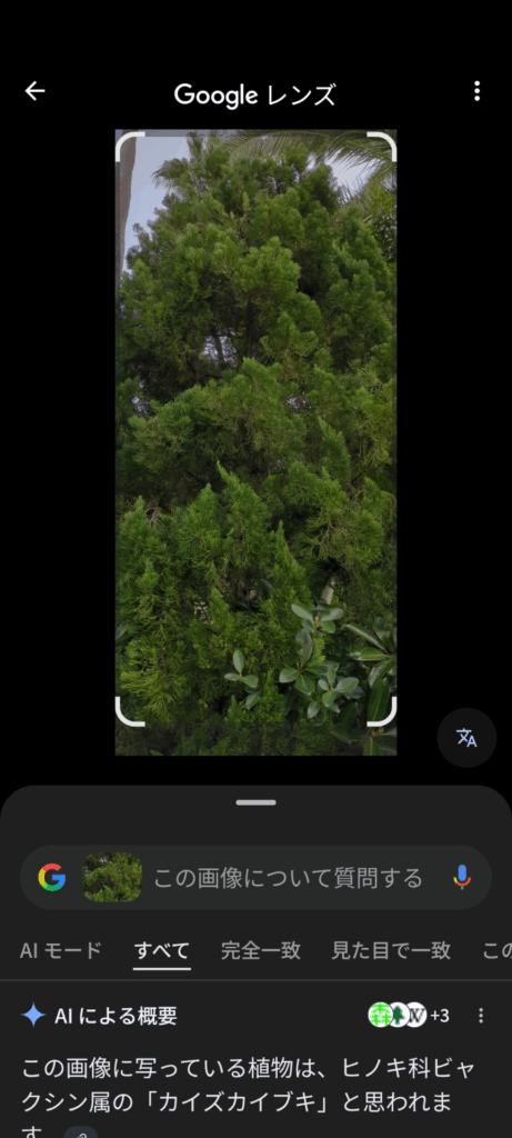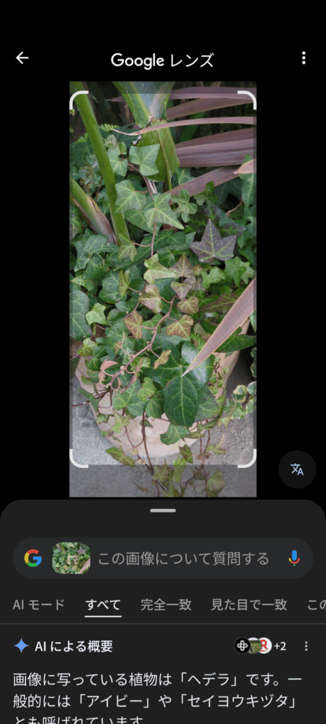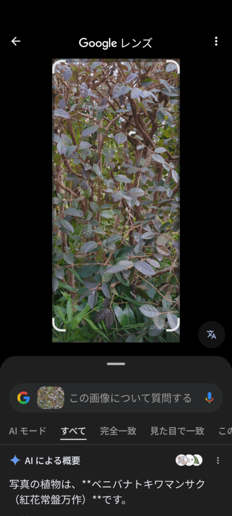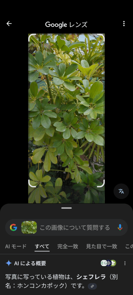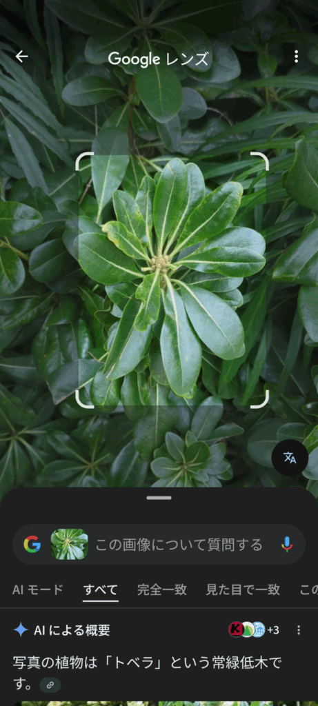 ここからは、実際にエリア内で見つけた植物たちを、Googleレンズの判定結果とともにご紹介します。