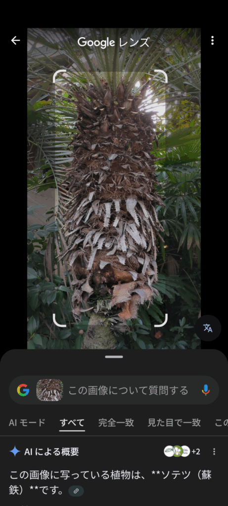 続いてはこちらのチクチクした植物。調べてみると「ソテツ」でした。