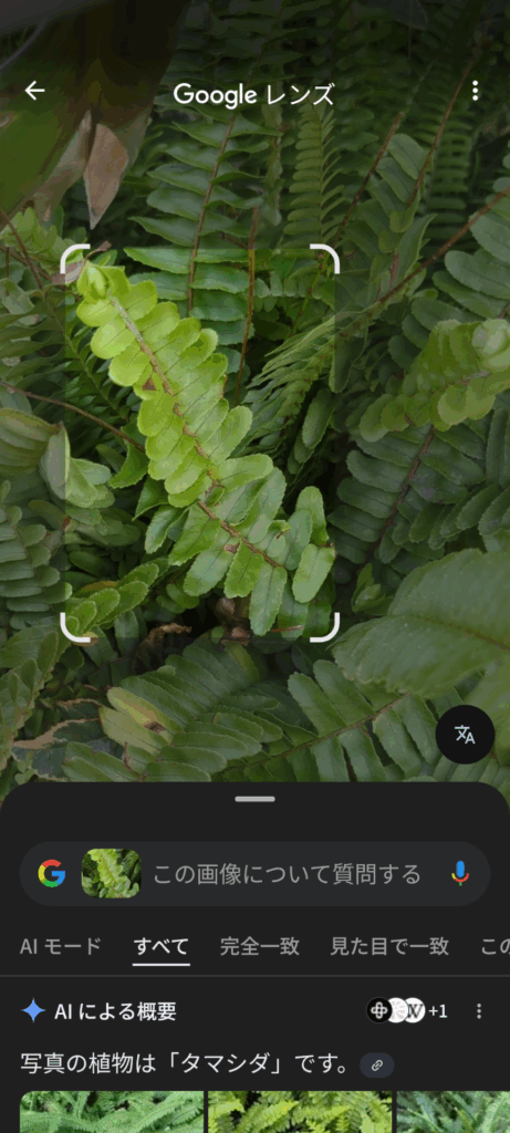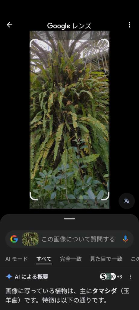まず目を引いたのが、この立派な葉っぱ!Googleレンズで調べてみると、「タマシダ」と出ました。