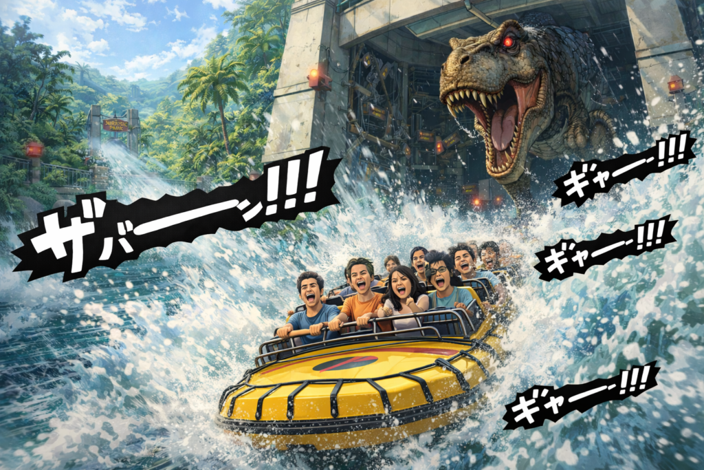 USJのジュラシック・パークエリアは、単なる遊園地の一角ではなく、「恐竜の世界に迷い込む体験」としての完成度が非常に高い空間でした。