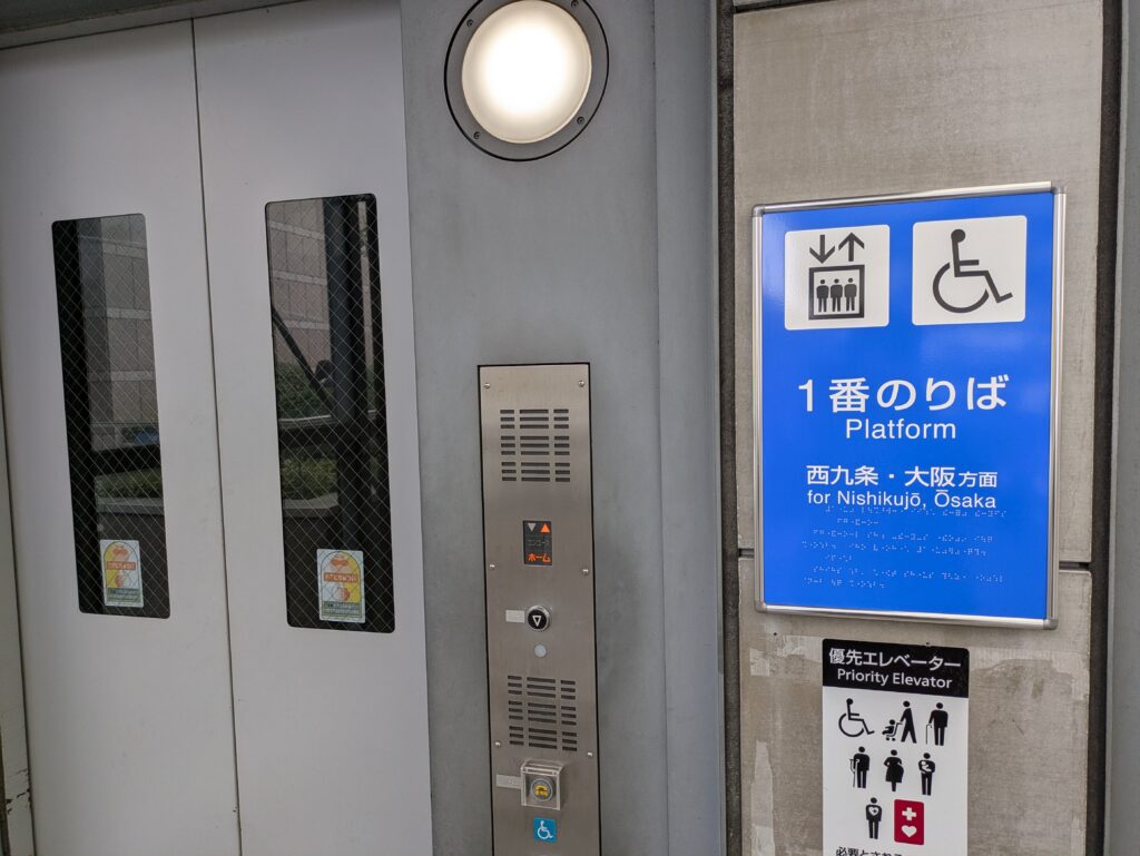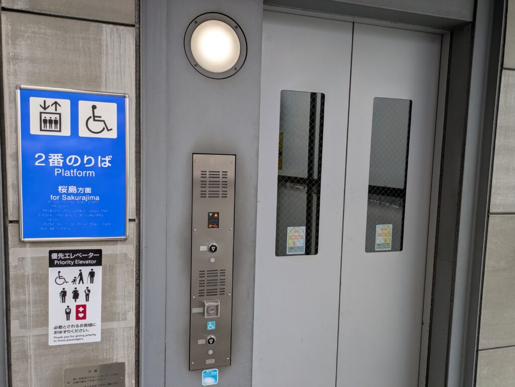 USJの最寄りであるユニバーサルシティ駅は、ホームからエスカレーターが続いており、ベビーカーや大きなキャリーケースでも安心な設計です。